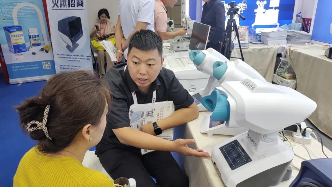 ? ? ? ?因此,展會(huì)現(xiàn)場(chǎng),不僅有來自醫(yī)院的領(lǐng)導(dǎo),也有自營(yíng)視光機(jī)構(gòu)的負(fù)責(zé)人前來咨詢、體驗(yàn)。尤其以代表龍達(dá)視光強(qiáng)勁研發(fā)實(shí)力的近視矯治儀、近視治療儀、霧視屏和數(shù)字智能型同視機(jī)最為引人注目。
